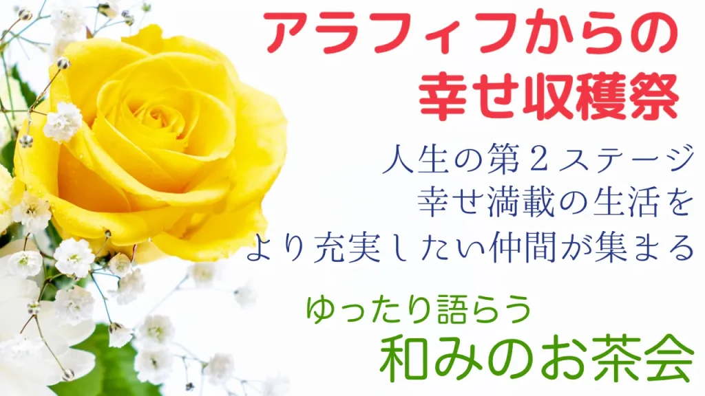 そろそろ定年が見えてきたという世代の方・アラフィフ世代を対象にしたお茶会です。